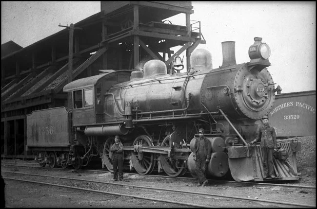 Northern Pacific engine 1356, built in 1902, first pulled the NP’s North Coast Limited passenger service between Missoula, Montana, and Spokane, Washington. Later she was reassigned to branch line freight, mixed and passenger service, largely in the Missoula area and between Missoula and Wallace, Idaho.